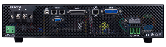 The BK Precision MR25080 Series of high voltage multi-range DC power supplies produce 250V at up to 5kW of clean output power in a compact 2U form factor. For benchtop applications, the MR25080 offers an intuitive user interface for list mode programming and slew rate adjustments directly from the front panel. Operating software is provided for test sequence generation and data logging without the need to write source code. In addition, this series supports USB, GPIB, LXI compliant LAN, and analog interfaces for remote control and programming.